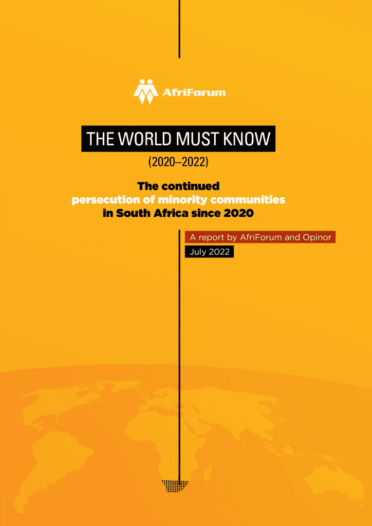 AfriForum has once again compiled a report that proves that the human rights situation in South Africa, especially with regard to minority rights, continues to deteriorate in 2025. This report exposes the following: the number and severity of the South African government’s racially discriminatory policies are increasing; private property rights are increasingly under threat; incitement to violence and hatred against minority groups by prominent politicians are worsening; critics of the government are being subjected to intimidation and police investigations; and minority heritage and education are being targeted, attacked and marginalised.