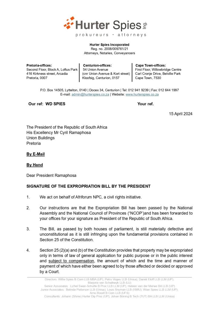 AfriForum’s submission to the Portfolio Committee on Public Works and Infrastructure on the Expropriation Bill of 2020